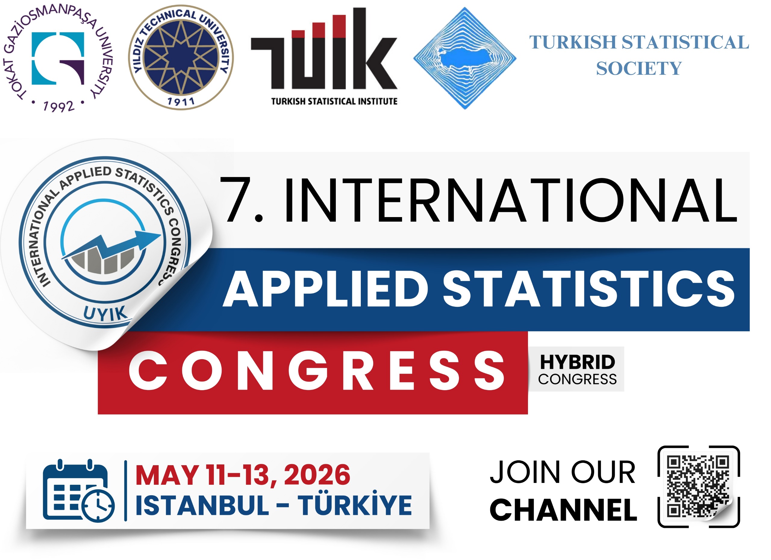 We cordially invite all researchers who seek to explore new horizons in the world of statistics and contribute to scientific progress through the application of statistical methodologies to join us at the 7th International Conference on Applied Statistics, to be held on May 11–13, 2026, at Yıldız Technical University. It would be our great honor to welcome you among us.