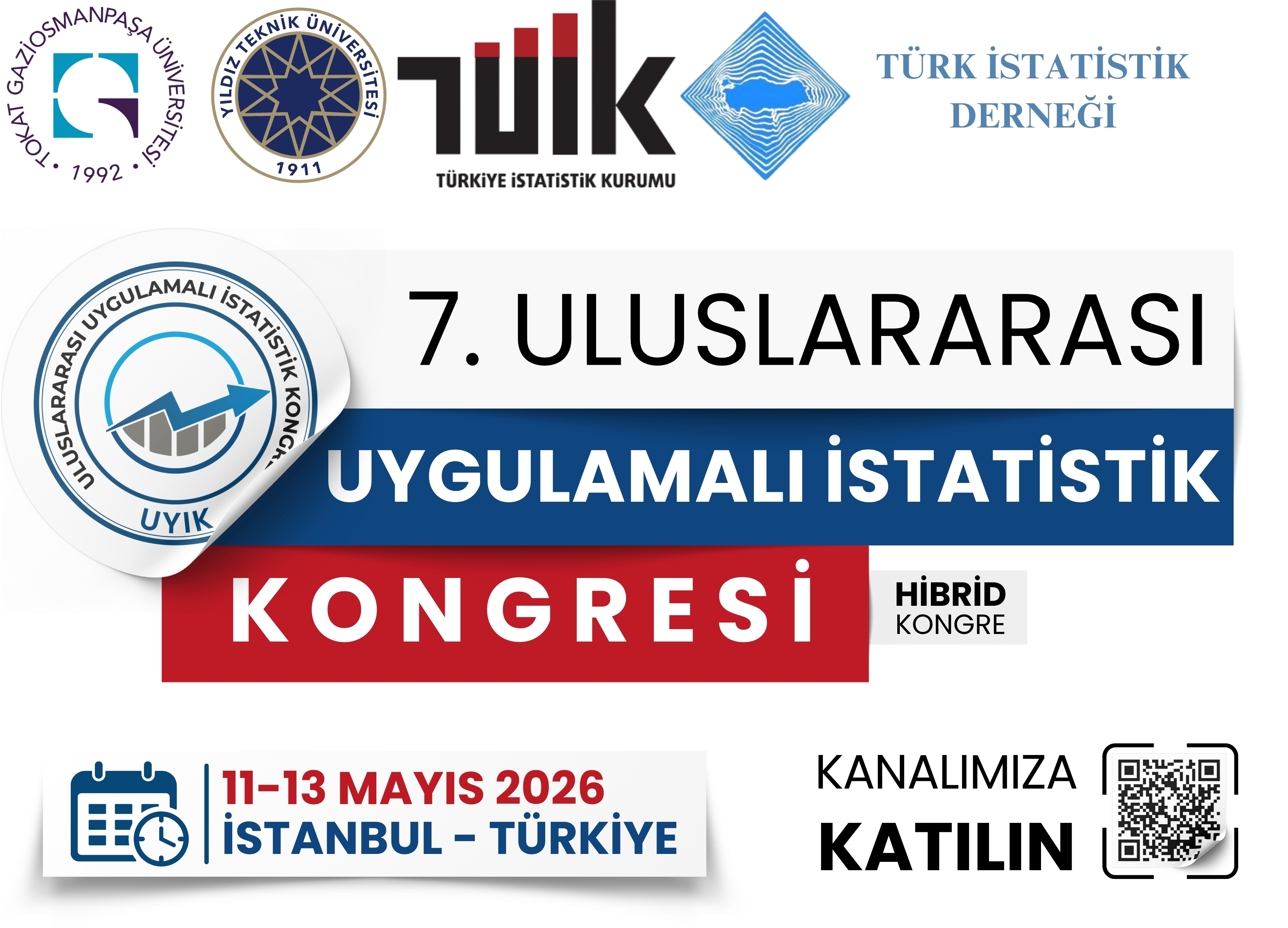 Tokat Gaziosmanpaşa Üniversitesi himayesinde; Yıldız Teknik Üniversitesi, Türkiye İstatistik Kurumu (TÜİK) ve Türk İstatistik Derneği iş birliğiyle gerçekleştirilecek olan kongremiz, 11–13 Mayıs 2026 tarihlerinde Yıldız Teknik Üniversitesi ev sahipliğinde hibrit formatta (yüz yüze ve çevrim içi) düzenlenecektir.